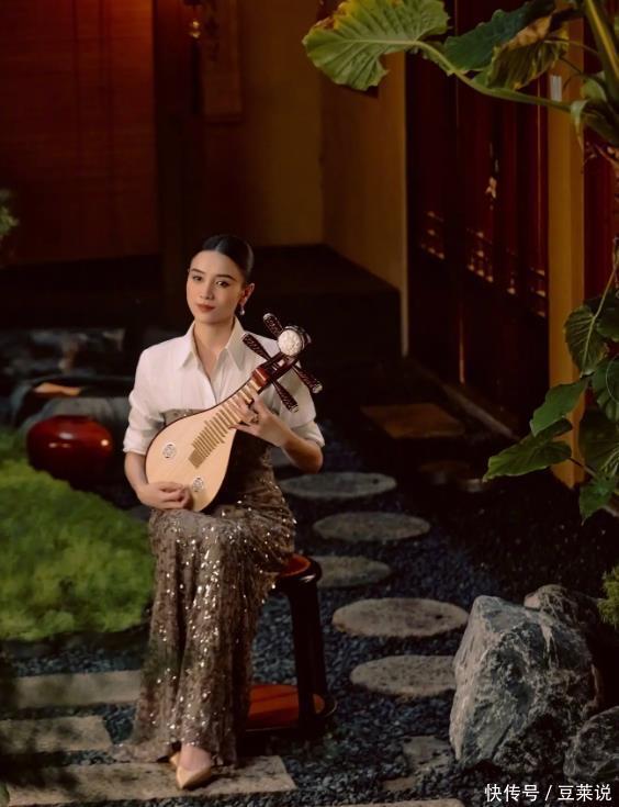 在场外,宋佳还演奏一段乐器,她穿着简洁的白衬衫,配着满是亮片的棕色半身裙子,真是典型的东方美人,让人移不开眼睛。